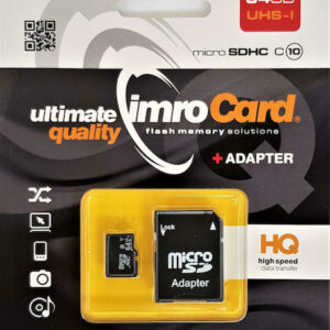 Οι κάρτες μνήμης IMRO microSDHC κατασκευάζονται με χρήση ηλεκτρονικών συσκευών που εγγυώνται τις καλύτερες παραμέτρους απόδοσης. Η γρήγορη μεταφορά, ανάγνωση